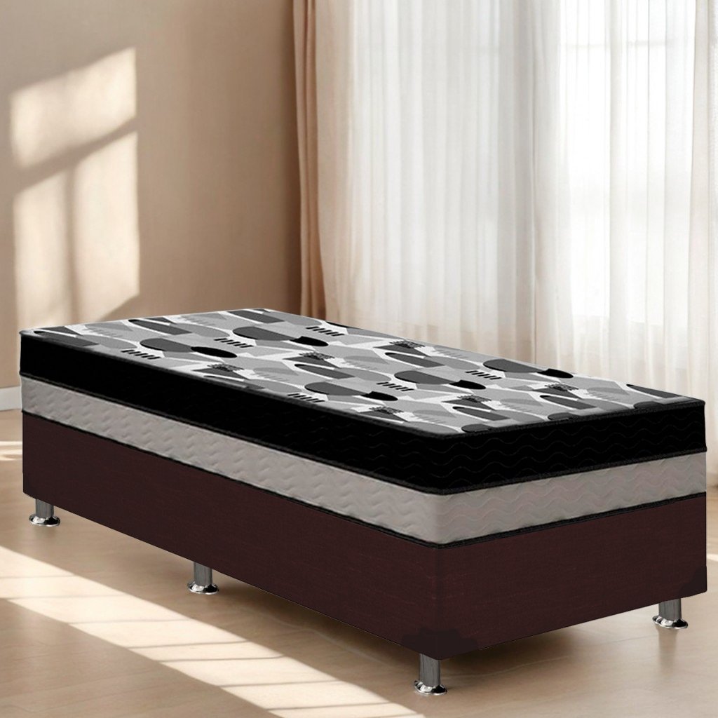 Colchão Solteiro ISO Dupla Face + Base Box Simples Corino Marrom – ORTOBOM + ALTO NÍVEL CAMAS E COLCHÕES– Fabricante: Ortobom/Alto Nível