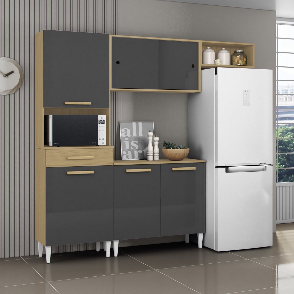 Cozinha Compacta Isabelle Atacama/Grafite – ARAMÓVEIS– Fabricante: Aramóveis