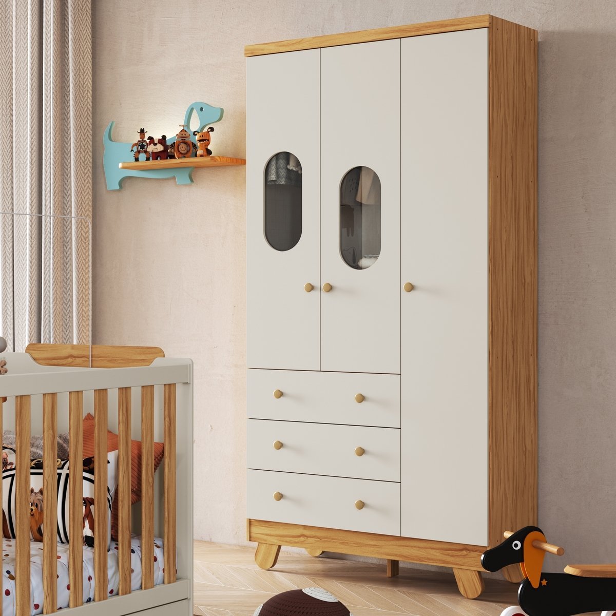 Guarda-Roupa 3 Portas Pingo Amêndoa/Off White – PEROBA MÓVEIS