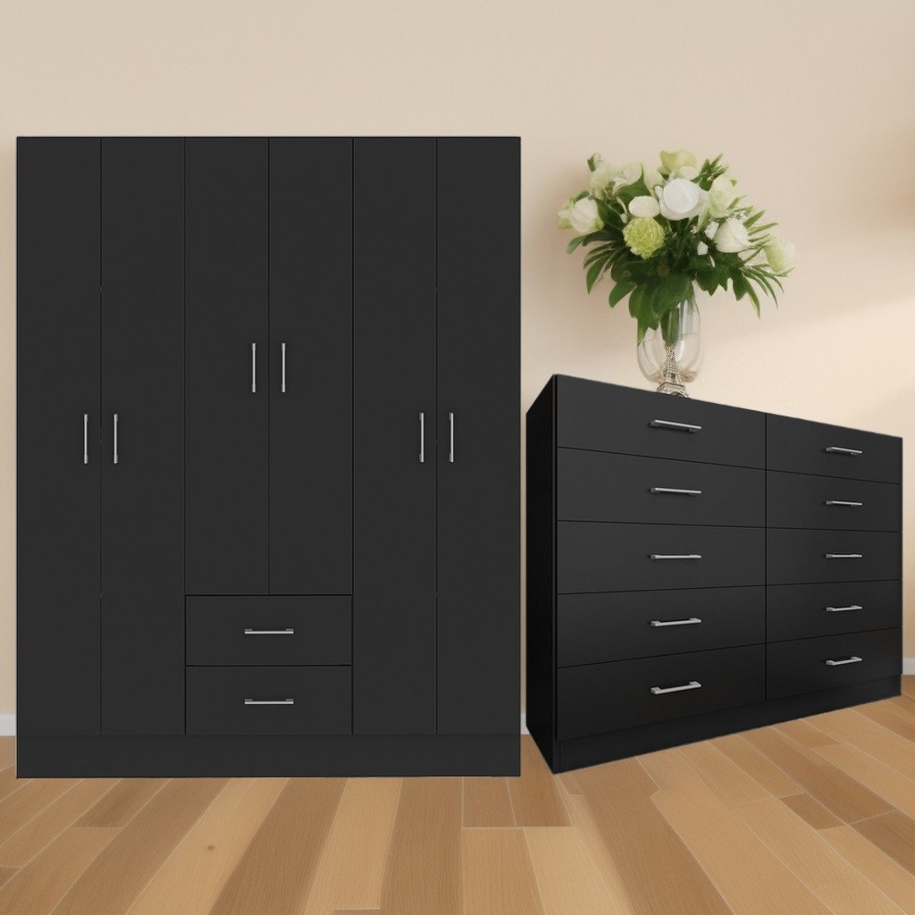 Guarda-Roupa 6 Portas Jamaica 6002 + Cômoda 10 Gavetas Caribe Preto – FELLICCI