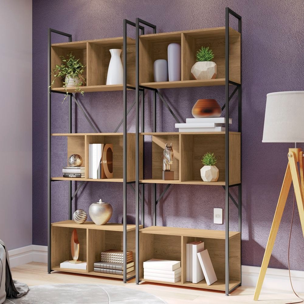 Kit com 2 Estantes Alta com 6 Nichos LI014 Freijó/Preto Fosco – KAPPESBERG