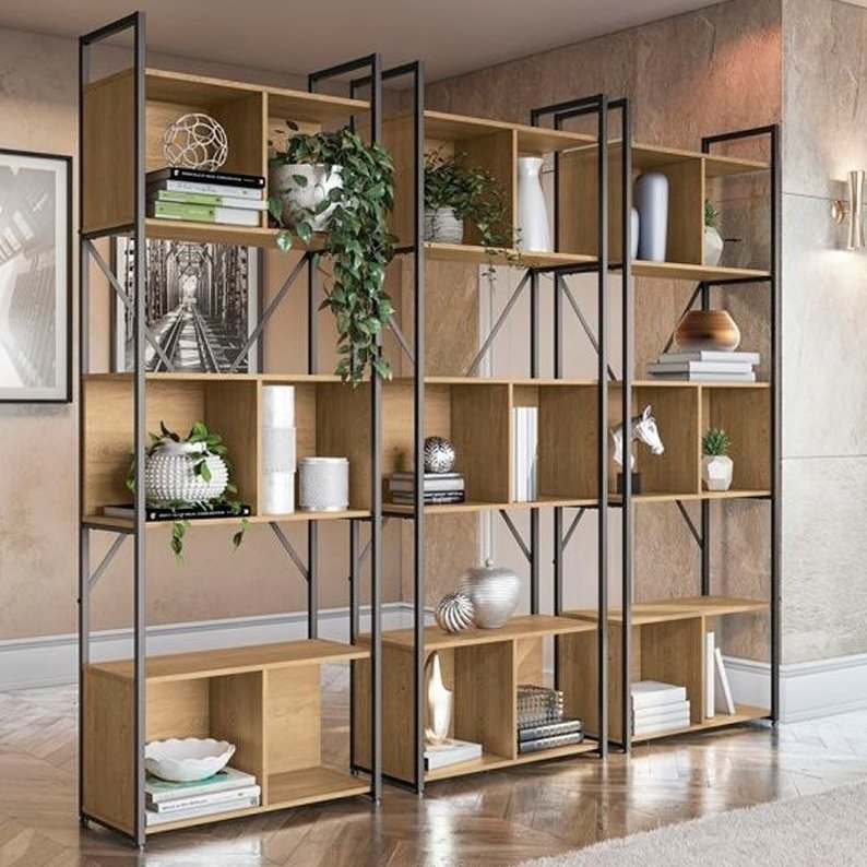 Kit com 3 Estantes Alta com 6 Nichos LI014 Freijó/Preto Fosco – KAPPESBERG