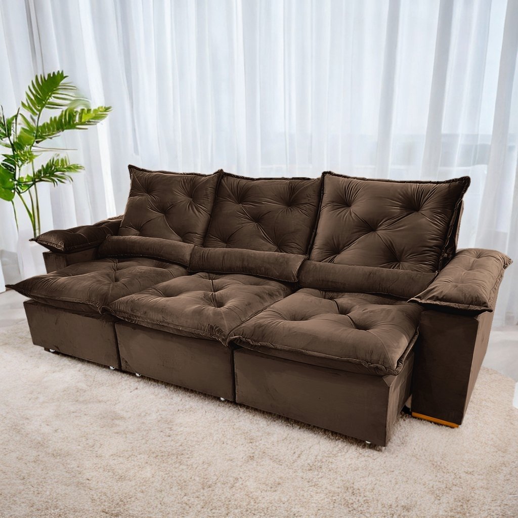 Sofá Retrátil e Reclinável 3 Módulos Grécia Marrom – QUINE ESTOFADOS
