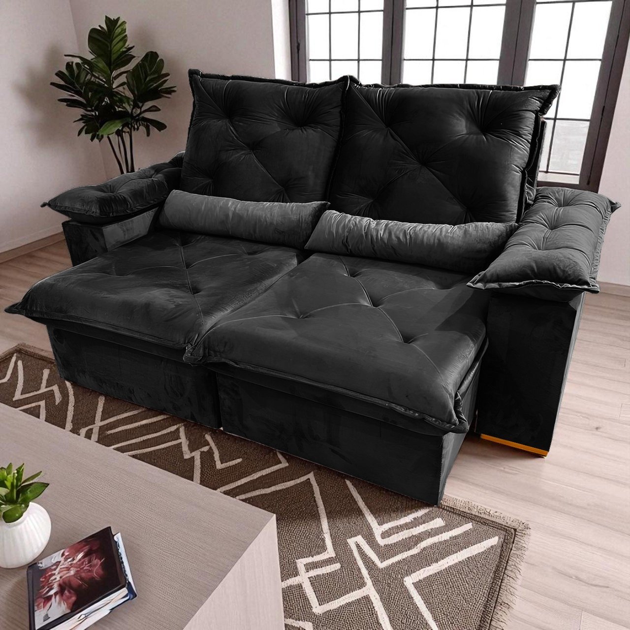 Sofá Retrátil e Reclinável Porto Madero 2,00 m Veludo Preto – IMPERIAL DECOR– Fabricante: Imperial Decor