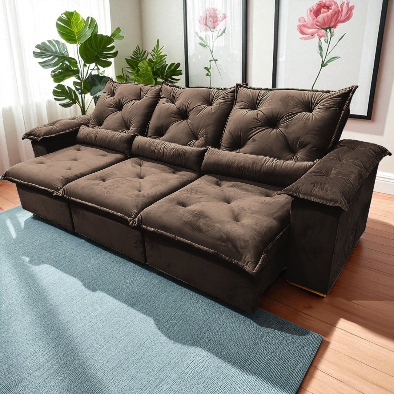 Sofá Retrátil e Reclinável Porto Madero 2,75 m Veludo Marrom – IMPERIAL DECOR– Fabricante: Imperial Decor