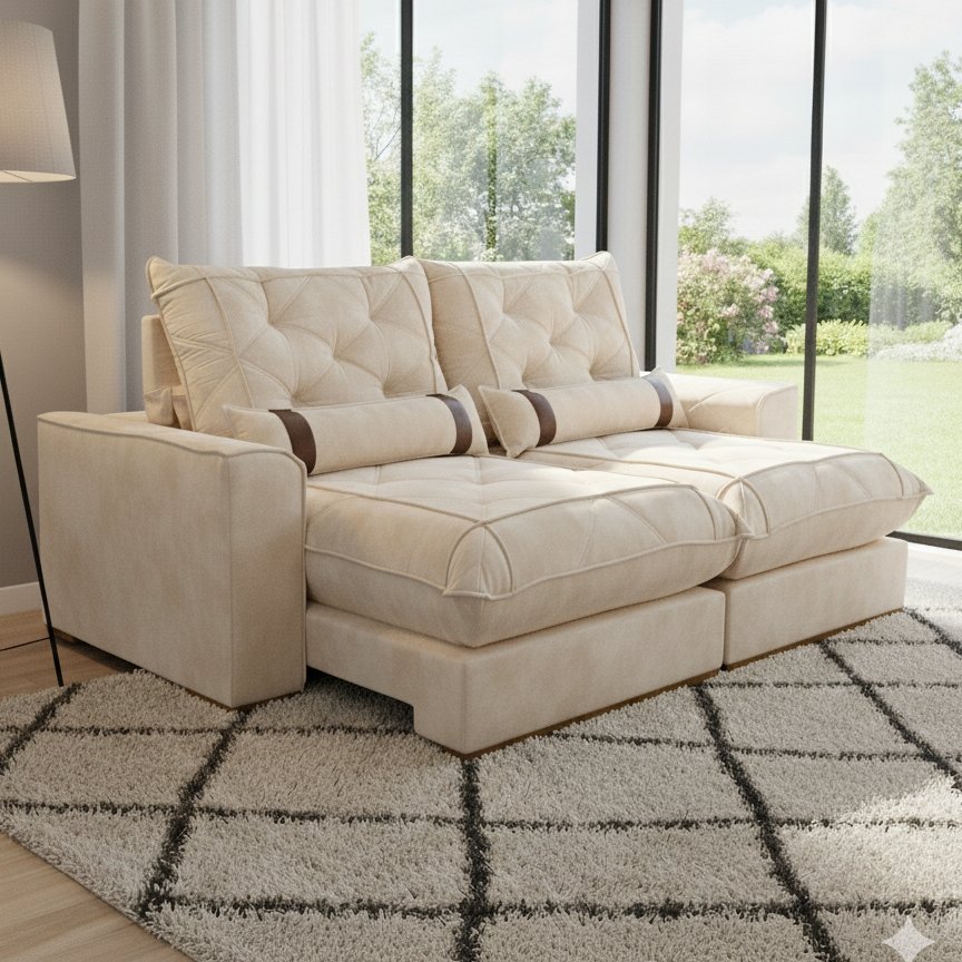 Sofá Retrátil e Reclinável Poseidon 029 2,50 m Veludo Marfim – VICAM ESTOFADOS